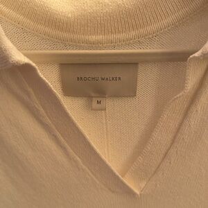 Elegant cream sweater with a V-neck design. Features a soft, textured fabric. Perfect for layering.