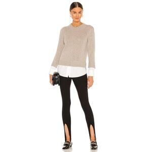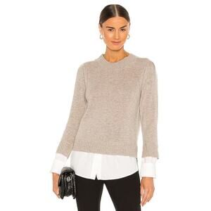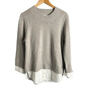 Brochu Walker Eton Layered Crew Looker Sweater in Light Chia Melange / White. Size L / Large. Features crew neckline, long sleeve, poplin shirt cuffs and hem, ribbed trims, and pullover style. Style JER3441. 70% Wool, 30% Cashmere. Excellent condition, no flaws.