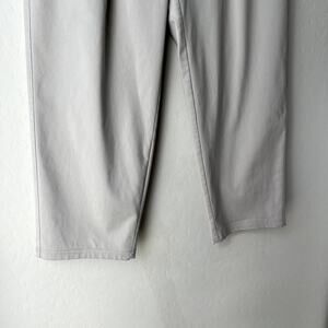 Brochu Walker Fiera neutral light gray pull-on pants with elastic stretch waistband. These pants feature a straight leg silhouette with front pleats and a cropped leg. Four pocket styling. Size large.