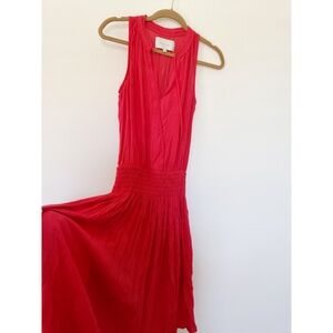 Brochu Walker Francine Crinkle Gauze Midi Dress Vermillion Red XS