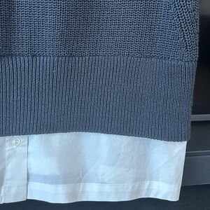 Chic sleeveless sweater. Ribbed texture. Contrasting white layered look. Perfect for layering.