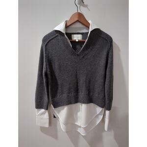 Brochu Walker Gray Wool Cashmere Layered Collared Sweater