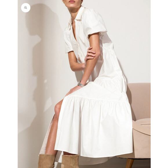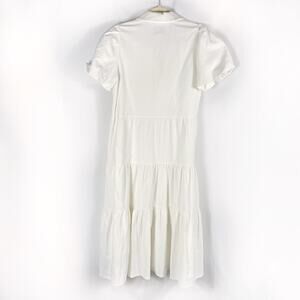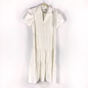 Brochu Walker Havana Midi Dress White Tiered Button Front Puff Sleeve Sz M