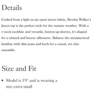 Vneck, Lightweight top with sleeves that can be rolled up. Split on the sides with longer hem in the back. Perfect for year round wear.