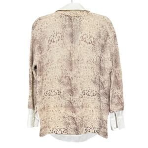 Brochu Walker Layered Look V-Neck Sweater XS Wool Cashmere Blend Animal Print