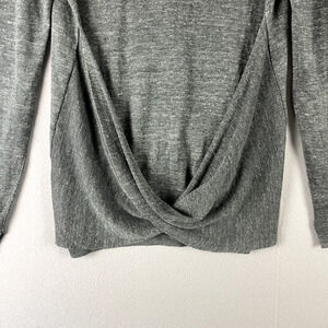 Brochu Walker Linen Cardigan Sweater Women Medium Gray Twist Back V-Neck Minimal