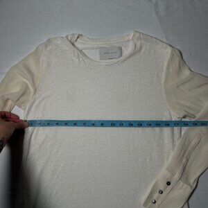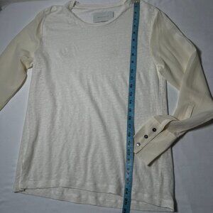Brochu Walker Linen Slub Silk Sleeve Top Ivory Long Sleeve Crew Neck Small