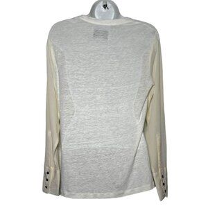 Brochu Walker Linen Slub Silk Sleeve Top Blouse Ivory Long Sleeve slc916 Small