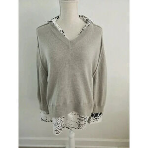 Brochu Walker Looker Cashmere Wool Layered V-Neck Oversize Sweater FLAWS size S