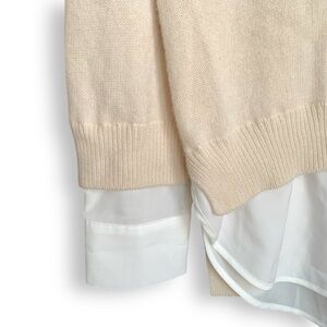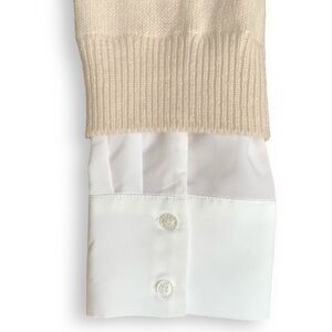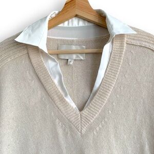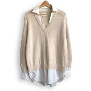 Brochu Walker Looker Sweater L Tan Layered V Neck Elbow Patch Neutral Cream