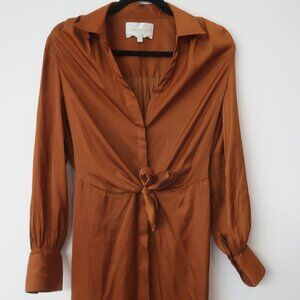 Brochu Walker Madsen Midi Shirt Dress Satin Turmeric Size XS