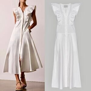 NEW Brochu Walker The Aurora Ruffle Midi Dress Pockets Cotton White