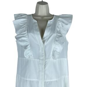 Brochu Walker The Aurora Ruffle Midi Dress Pockets Cotton White Size L