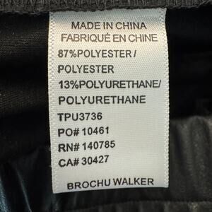 Brochu Walker The Fiera Pant in Black. Size M / Medium. Features relaxed fit, straight leg tapered at ankle, elasticized pull-on waistband, high rise, stitched down front pleats, front slant pockets, back welt pockets, stretch for added comfort, faux leather fabrication. Style TPU3736. 87% polyester, 13% polyurethane. Excellent condition, no flaws.
