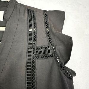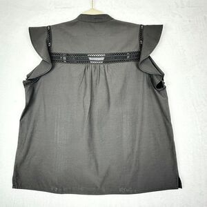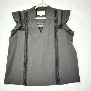 Brochu Walker The Havana Top Size XS Boxy Ruffle Sleeve Lattice Trim Gray