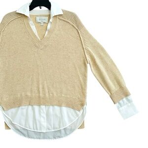 Brochu Walker The Looker Layered V-Neck Wool Cashmere Dune Sand Sweater size S