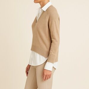 A bestselling sweater for over 10 years, The Looker Layered V-Neck makes getting dressed and looking effortlessly chic so easy. A luxurious, cashmere blend sweater is pre-layered over a recycled georgette underlayer which creates the illusion of two pieces in one. The shirting collar, cuffs and hem are attached on the inside of the knit layer, so The Looker remains lightweight and trans seasonal, while the slightly oversized fit makes it cozy. The mixed media sweater that completes any look, The Looker is the one piece you will want to wear every day, everywhere.