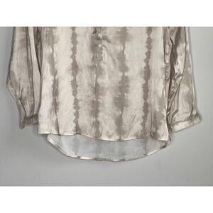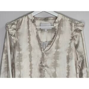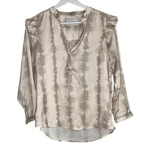 Brochu Walker Tie Dye Long Sleeve Ruffle Trim Button-Front Blouse Gray/White XS