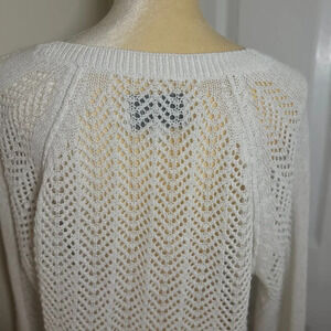Brochu Walker White Open Stitch Back & Sleeve V-Neck Sweater