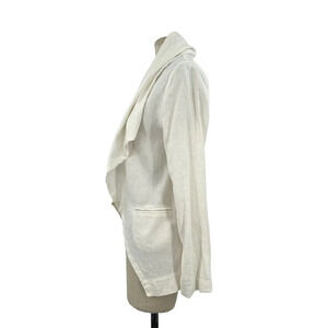 Brochu Walker White Tencel Linen Open Front Waterfall Blazer Jacket Size Medium