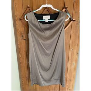 Brochu Walker taupe silk sleeveless shift dress with black silk lining. Excellent Condition