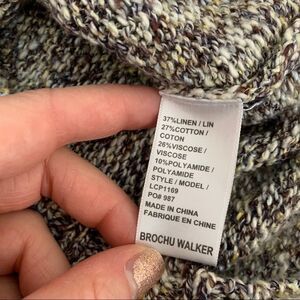 Stunning and super comfortable marked knit sweater by brochu walker. Features boatneck neckline. Has been worn a couple times but overall Great preowned condition without any significant flaws. Linen/cotton/viscose/polyamide blend. Lying flat armpit to armpit approx 15.5” across and top of shoulder to bottom hem approx 24”. All measurements are approximate