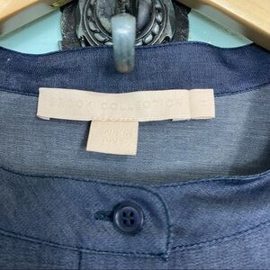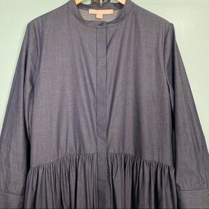 Brock Collection Blue 3/4 Sleeve Button Down Mock Neck Dress Sz 14