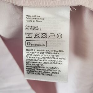 Key features: tiered ruffles, elastic straps, side zip, midi length, very pale pink/lilac shade, thicker fabric in viscose/linen/cotton blend, fitted silhouette