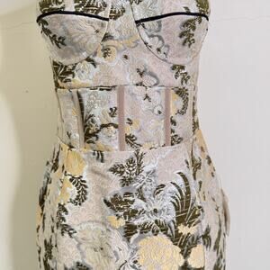 Brock Collection Metallic Floral Brocade Corset Midi Dress 6 Made in Italy NWT
