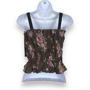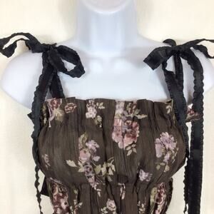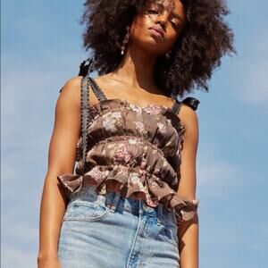Brock Collection Shirred Ribbon Tie Floral Print Top size S