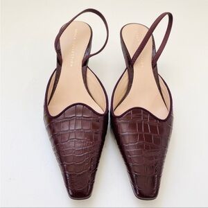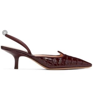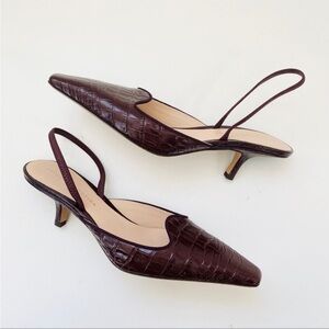 Brock Collection croc embossed kitten heel sling back in burgundy
