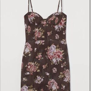 Brock Collection x H&M Brown Pink Floral Print Fitted Dress NWT