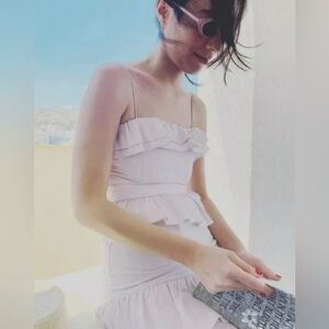 Brock Collection x H&M Large Flounced Dress Cotton Ruffled Pink Fitted Tiered