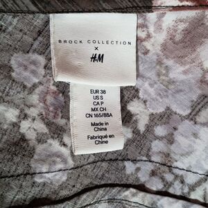 The Brock Collection x H&M Maxi Slip Dress in Brown Floral Lace is a stylish and versatile piece for women. This long dress features a V-neckline and a zip closure, making it perfect for both party occasions and casual wear. With a beautiful floral pattern and a backless design, this dress is a great option for the summer and spring seasons. Made from a blend of polyester and lyocell, this dress is easy to care for with machine washable fabric. The dress is in size small with a pit to pit measurement of 16 inches and a waist measurement of 30 inches. Length: 52"
