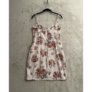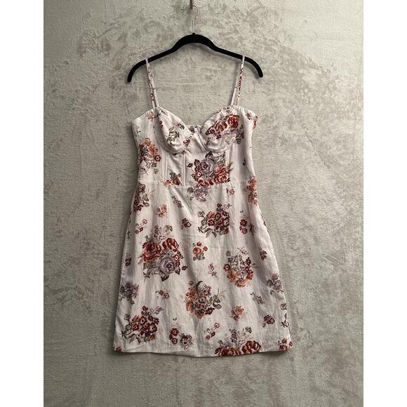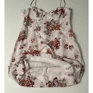 In preowned excellent condition Floral Brock Collection × H&M. Short, fitted dress in woven fabric made from a Tencel lyocell and linen blend with a printed pattern. Narrow, adjustable shoulder straps, sweetheart neckline with silicone trim inside upper edge, and double layers at top with shaped cups. Boning at front and back, concealed zipper at back with hook-and-eye fastener, and a seam at waist with darts. Lyocell 78%, Linen 22% Lining is 100% Polyester. Floral, Twee, Coquette, Boho, Bohemian, Cottage, Shabby Chic, Cottagecore, Love, Feminine, Romantic, Date Night, Beach Wedding, Going Out, Summer, Breathable, Powder Pink, Pastel, Pastel Pink, Beachy, Coastal.