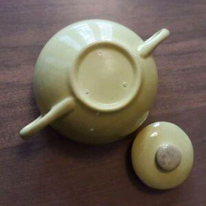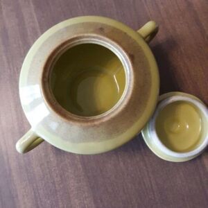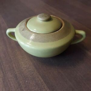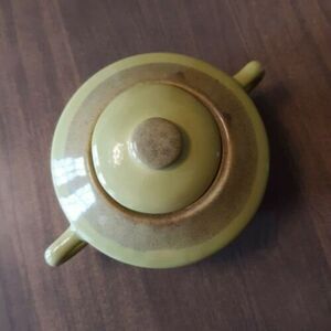 Vintage Brock Ware Desert Mist Ceramic Chartreuse & Brown Sugar Bowl with Lid Chip see photo