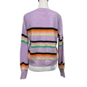 Brodie Cashmere Pop Striped Sweater Women Size S Crew Neck Pullover Purple Crop