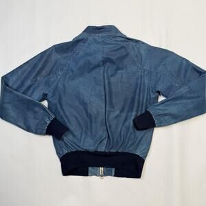 Brogden Track Jacket Mens Large Blue Leather Bomber Raglan Two-Way Zip Rib Knit