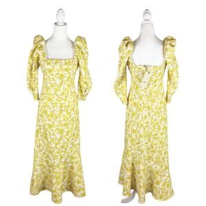 The Gisla dress exemplifies the brand’s core aesthetic; crafted in stretchy crepe to a regal, scoop-neck silhouette swathed in the brand’s signature floral print. Fit for a queen? Well, it was designed to be.