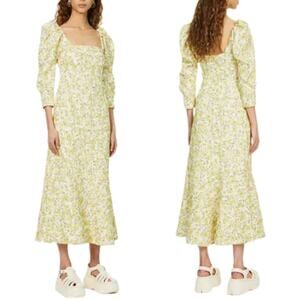 The Gisla dress exemplifies the brand’s core aesthetic; crafted in stretchy crepe to a regal, scoop-neck silhouette swathed in the brand’s signature floral print. Fit for a queen? Well, it was designed to be.