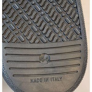 New unused black brogued leather sneaker with a wingtip sole evokes the polished style of a derby with a comfortable grip sole. Does not come in manufacturer packaging, but polybagged and packed for protection and integrity. Genuine Italian leather and made, Men's size US 10 or EU 44 as marked on shoe.