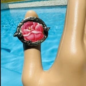 Broken China Artisan Ring made from English Bone China & Silver Blend Metalwork , Size 6.5