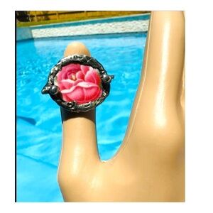 This beautiful ring was created from fragments of an English Bone China Teacup. I use Boho-Style, silver-blend metalwork solder to create strong and sturdy pieces. The material is made to stay forever shiny but can lose some of its sheen. It may be gently polished with a steel wool to replenish the sheen.