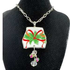 Broken China Christmas Holly Pendant w/ Crystals Wicks n Sticks Plate Collection