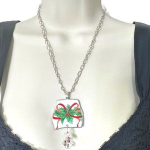 • Holiday, Berries and Bows, holly tree, Christmas necklace, gifting