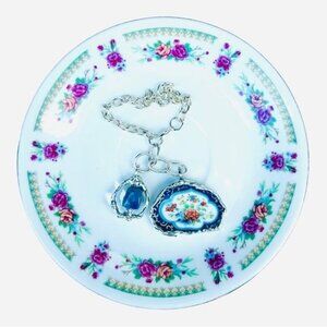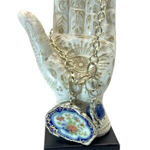 This handcrafted bracelet combines broken china and sodalite charms, giving new life to repurposed materials. The unique design showcases the beauty of upcycled pieces and provides a one-of-a-kind accessory. Each bracelet is expertly crafted with care and attention to detail.