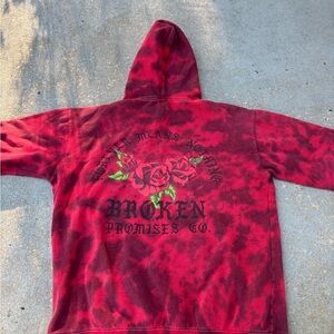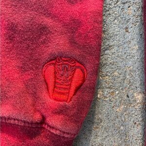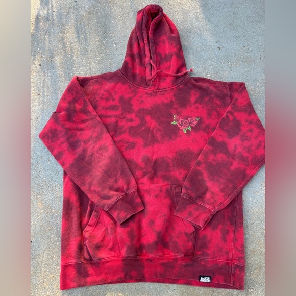 Upgrade your casual style with this vibrant red tie-dye hoodie, featuring a beautiful rose embroidery. Ideal for a trendy, everyday look.