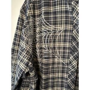 Broken Promises Rhinestone Spider Web Flannel Shirt XL Preloved Halloween