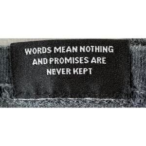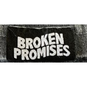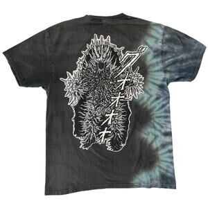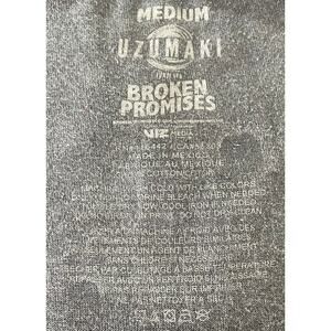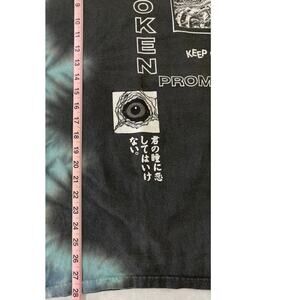 This Broken Promises x Uzumaki collaboration tee features artwork by legendary horror manga artist Junji Ito, known for his eerie and surreal style. The shirt is a size Medium and showcases a black and blue tie-dye base with bold front and back graphics, including Japanese text and iconic Uzumaki illustrations. Made in Mexico from 100% cotton, this tee measures approximately 20.5" pit to pit and 28" in length. It’s in good pre-owned condition with some light fading and minor wear typical of vintage-style tees.