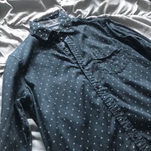 This patterned button down is clean,, in great quality and in condition
